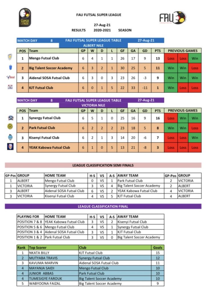 Futsal action shall return on 3rd, September, 2021 with the Futsal Uganda Cup and Futsal Super finals on the subsequent weekend as the 2020/21 season winds up.