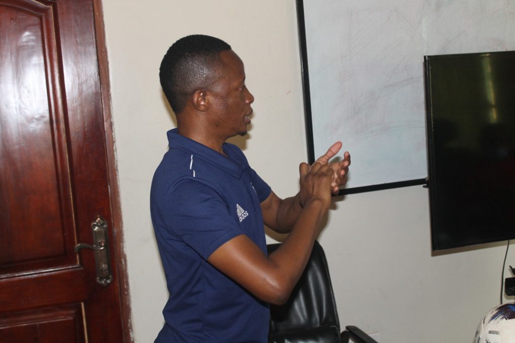 FAU Director Futsal Development- Ben Mwesigwa presenting during one of the sessions
