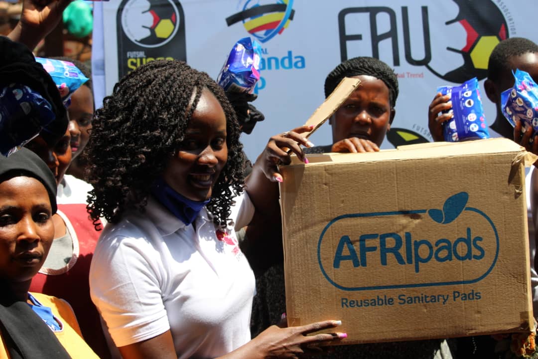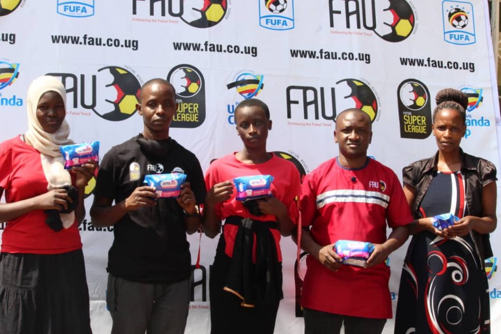 FAU, led by its Chairman Hamzah Jjunju utilized this opportinity to introduce Futsal to the girls at Kabowa High simultaneously sensitizing them on how to use these reusable pads.
