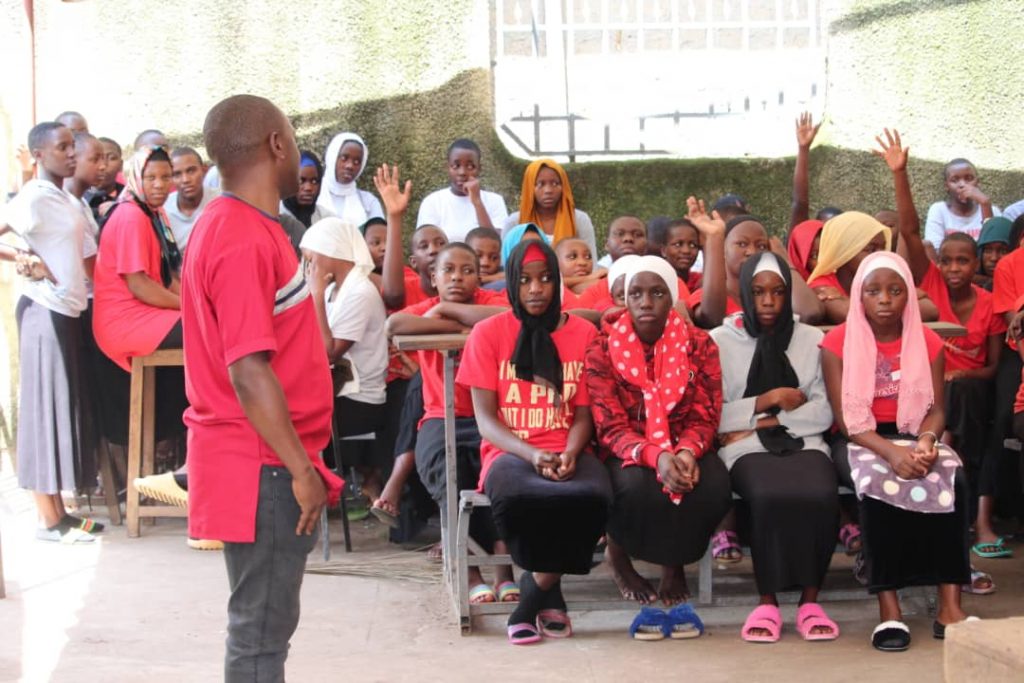FAU Chairman Jjunju Hamzah addressing a section of girl students at Kabowa High School.