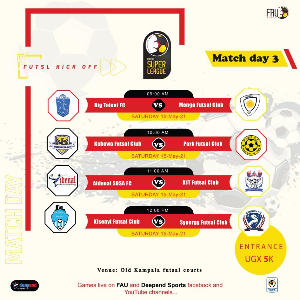 Matchday 3 will present a top of the table affair in the Victoria Nile group as second placed Kisenyi Futsal Club face off with table leader Synergy Futsal Club.