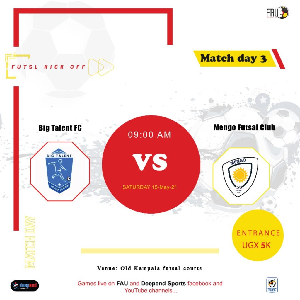 Match Day 3 will present the most anticipated game so far. Mengo Futsal Club will tussle out with Big Talent Soccer Academy as the only teams to have picked up maximum points after 2 games.