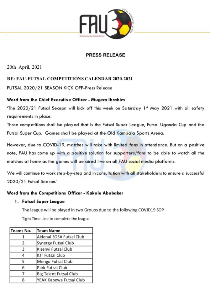 FutsalNewsStatement on resumption of futsal competitions by adminApril 21, 2021April 21, 202100 Share