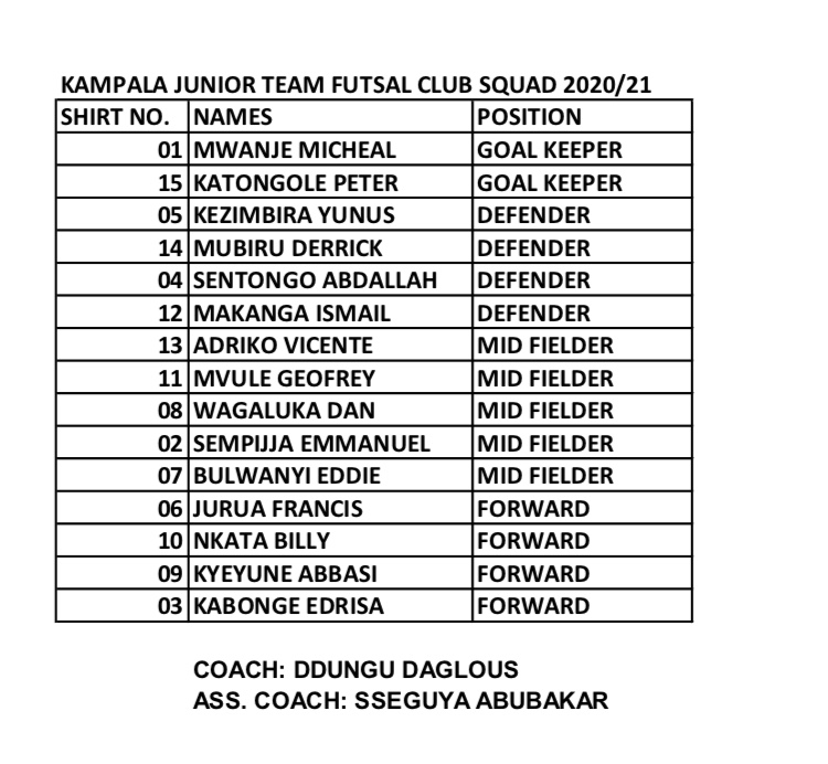 Kampala Junior Team will look to reciprocate it’s mainstream football experiences into futsal as they seek to impress in their maiden appearance in the 2021 Futsal Super League.